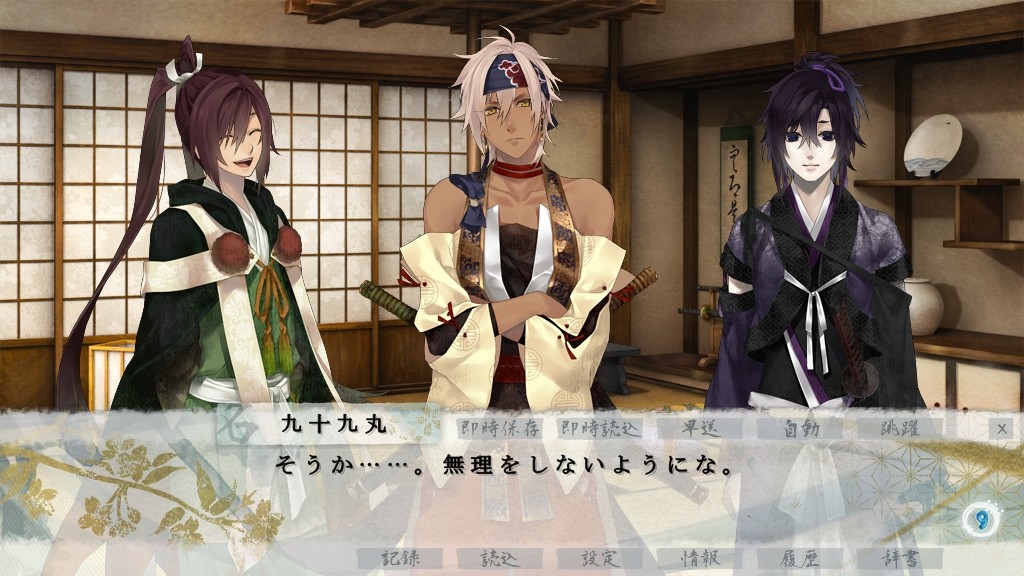 La seule chose que je lui reproche c’est de se vouloir assez inaccessible. Déjà le niveau de langage utilisé c’est une chose, mais surtout sa longueur et sa thématique principale: dur de rentrer dedans si on est pas branché(e) samouraï et jeux waafu. Si vous aimez le style: ça deviendra très probablement votre VN préféré de tous les temps, sinon…. Pas sûre que vous aurez le courage de le finir. Y a quelque temps encore je pensais que ça coulait de source que c’était l’otome game le plus qualitatif au monde, mais après avoir parlé avec certaines personnes sur Twitter je me rend compte qu’on peut pas tou(te)s rentrer dedans aussi facilement que moi je l’ai fait.