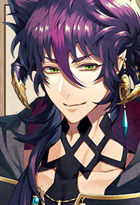 Première personne qui fait la rencontre de Kotone au café en passant par le portail dans le sous-sol. Il se présente comme un ancien ami de Souan (le grand-père de Kotone) et ni plus ni moins que le Roi des démons en personne. C’est un personnage que j’ai vraiment trouvé amusant. Il a toujours quelque chose de drôle à dire et a une attitude très bienveillante avec les autres personnages: que ce soit Kotone ou Il. Même ses menaces envers Rindo cachent une amitié assez solide. Sa route ne se débloque qu’en dernier et bien qu’étant très fan du personnage, j’avoue avoir été laissée sur ma faim. J’ai l’impression que le jeu a considéré la romance avec Mysir comme acquise d’office et de ce fait, n’a pas vraiment essayé de mettre l’accent sur la façon dont les sentiments se sont développés. C’est comme si l’alchimie entre Kotone et Mysir repose entièrement sur un semblant de complicité construite au début du jeu ainsi que sur des éléments d’intrigues.