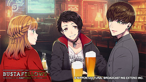 Bustafellows est graphiquement largement un cran au dessus de la plupart des sorties actuelles (le marché étant actuellement presque entièrement monopolisé par Otomate qui est pas vraiment réputé pour le dynamisme de ses graphismes, on va pas se mentir). Dans ce jeu tout est très vivant: on a des sprites de dos, des fonds animés et tout un tas de détails qui rendent le tout beaucoup plus dynamique que ce dont on a l’habitude de voir. Ceci dit je n’ai pas trouvé les illustrations exemptes de défauts, certaines ont des articulations assez bizarres et je trouve pas l’anatomie toujours parfaite.