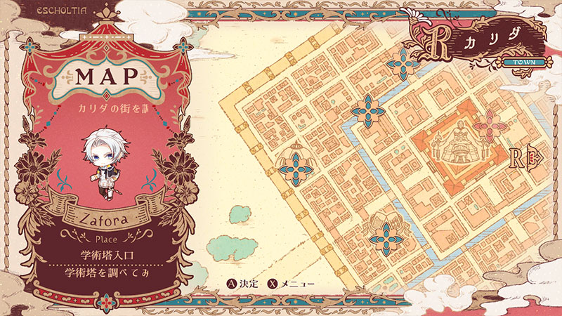 Ce jeu a été pour moi une véritable bouffée de nostalgie, que ce soit dans sa construction ou les thèmes abordés. Dès le premier lancement du logiciel on est directement plongé dans le début du récit, sans passage par l’écran d’accueil. Radiant Tale est un jeu semblable à bien des titres Otomate de l’ère de la PS2 avec une route commune plutôt longue, introduisant les thématiques principales de chaque prétendants. Cette route commune comprend pas mal d’évènements exclusifs aux personnages, permettant de faire déjà pas mal avancer leur relation avec l’héroïne avant même d’entrer dans leurs routes. La plupart de ces évènements sont accessibles via un système de carte comme si dessous: