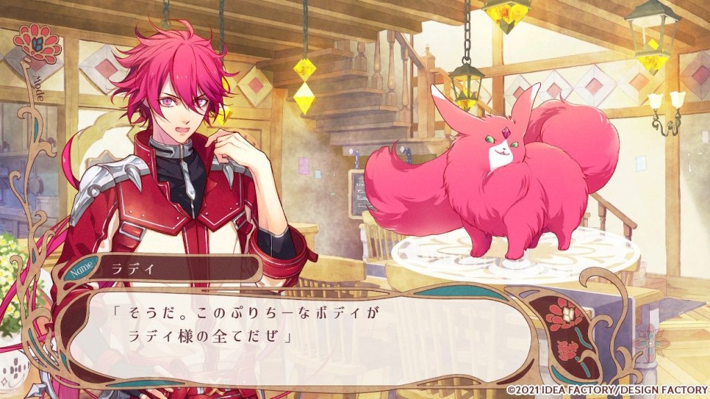 Responsable de la brasserie « Cheers » (je ne suis pas sûre de la romanisation). Dès le début présenté comme un personnage frivole et dragueur. Il oublie souvent son portefeuille lorsqu’il commande à Rebel, obligeant Tifalia à se rendre dans sa brasserie pour récupéré ses dettes. Il a une tendance à courtiser Tifalia dès qu’il la voit bien que cette dernière ne l’ai jamais prise au sérieux. C’est un personnage légèrement cliché dont l’utilité principale sert à créer un semblant de rivalité (route de Radie); mais je le trouve un peu trop charismatique et mis en avant pour ne pas avoir de route. (….le fandisc…. à quand le fandisc….). C’est un peu la Catherine du jeu (Genshin), il se téléporte facilement dans tous les bâtiments de la chaîne « Cheers » quelque soit la ville pour apporter son soutien aux personnages.